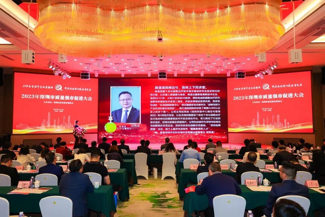 2023年4月12日,2023年深圳市質(zhì)量強市促進(jìn)大會(huì )暨深圳市質(zhì)量強市促進(jìn)會(huì )建會(huì )十周年慶祝大會(huì )在深圳銀湖國際會(huì )議中心舉行。大會(huì )對榮獲第九屆“深圳市質(zhì)量強市金質(zhì)獎?wù)隆奔疤崦劦膬?yōu)秀企業(yè)家進(jìn)行了隆重表彰,深圳市北科生物科技有限公司董事長(cháng)胡雋源博士榮獲第九屆“深圳市質(zhì)量強市金質(zhì)獎?wù)隆?,同時(shí)經(jīng)過(guò)會(huì )議審議,胡雋源博士增補成為深圳市質(zhì)量強市促進(jìn)會(huì )第三屆理事會(huì )副會(huì )長(cháng),北科生物成為深圳市質(zhì)量強市促進(jìn)會(huì )副會(huì )長(cháng)單位。